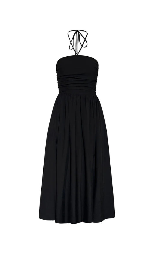 VESTIDO CORTO LÍNEAS NEGRO LINO CARO CRUZ