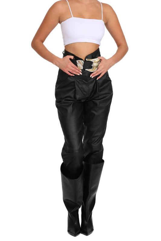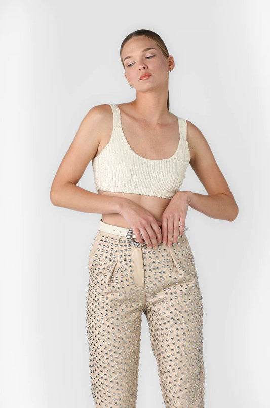 LEATHER STUD PANTS TAN