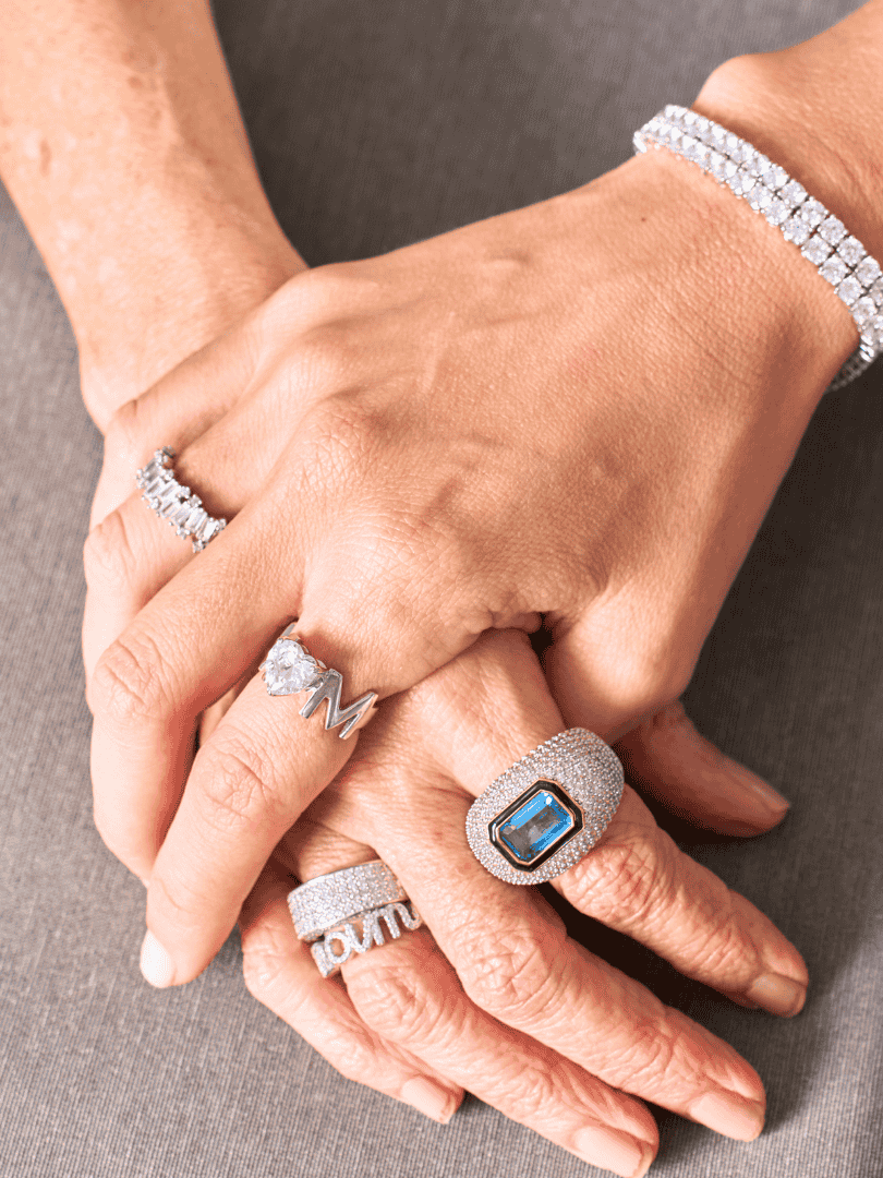 El Anillo Sublime Misi es una joya que captura el destello de las estrellas con sus incrustaciones de microcristales en tono cristal y cristal rectangular en tono aqua.