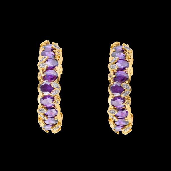 ARETES DE BRONCE CON BAÑO DE ORO 24K Y BRILLOS LILA