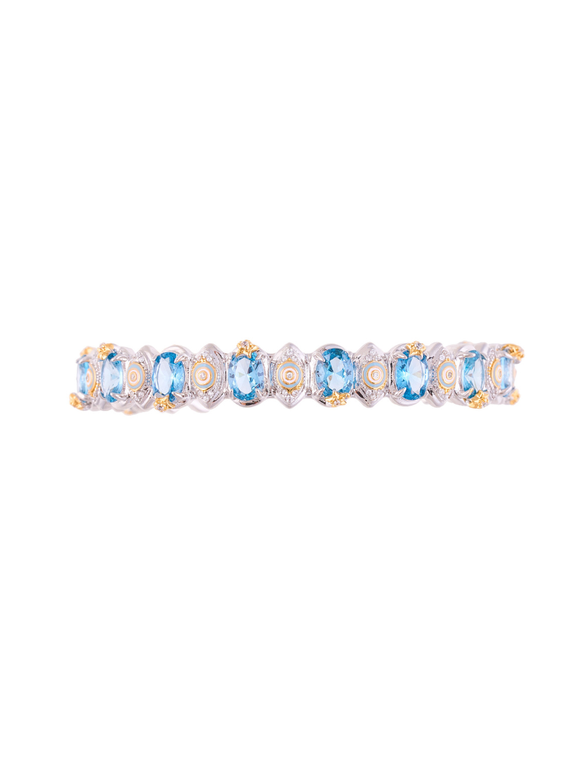 El brazalete Ojo Turco Nilo Aqua es todo un amuleto de protección y sabiduría. Su diseño contemporáneo con toques muy modernos le dan un aire de frescura, sofisticación y elegancia a tus outfits.