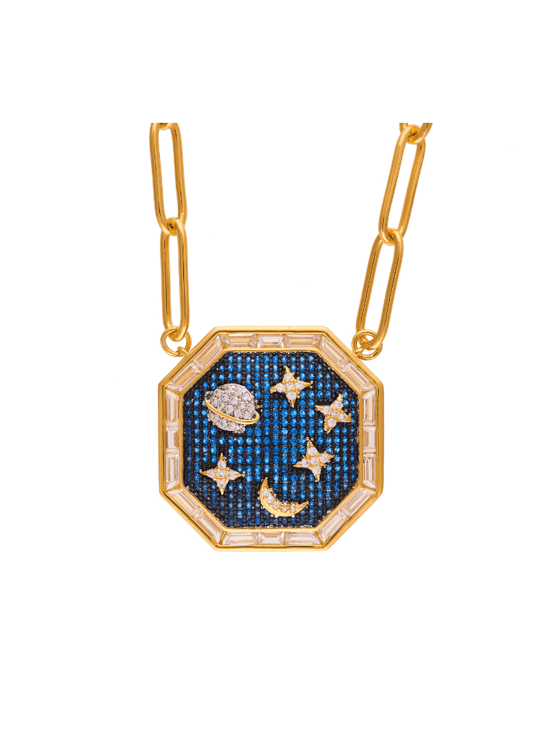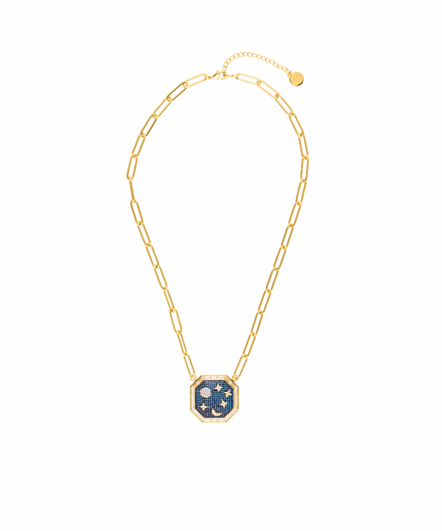Lleva toda la magia del universo contigo en nuestra Collar Octágono Sabah Zafiro!