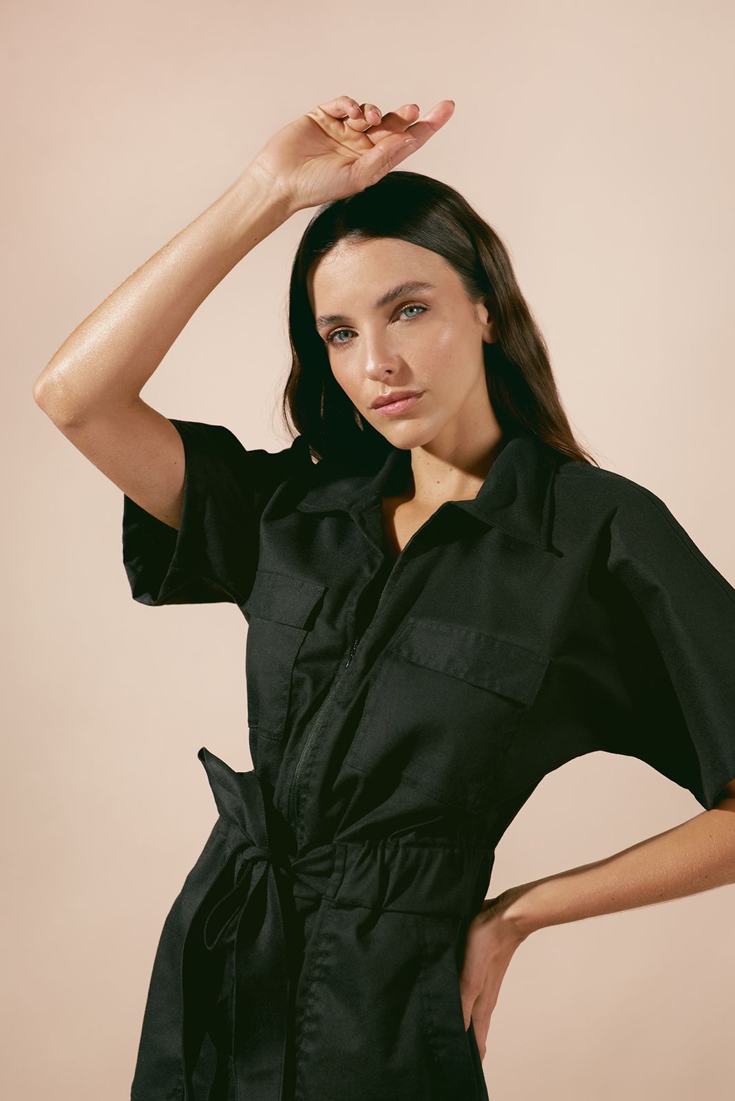 Presentamos el Celina Jumpsuit, una pieza esencial que combina a la perfección la funcionalidad utilitaria con un estilo moderno y sofisticado. Este enterizo en un elegante tono negro es la definición de versatilidad y comodidad con un toque chic.