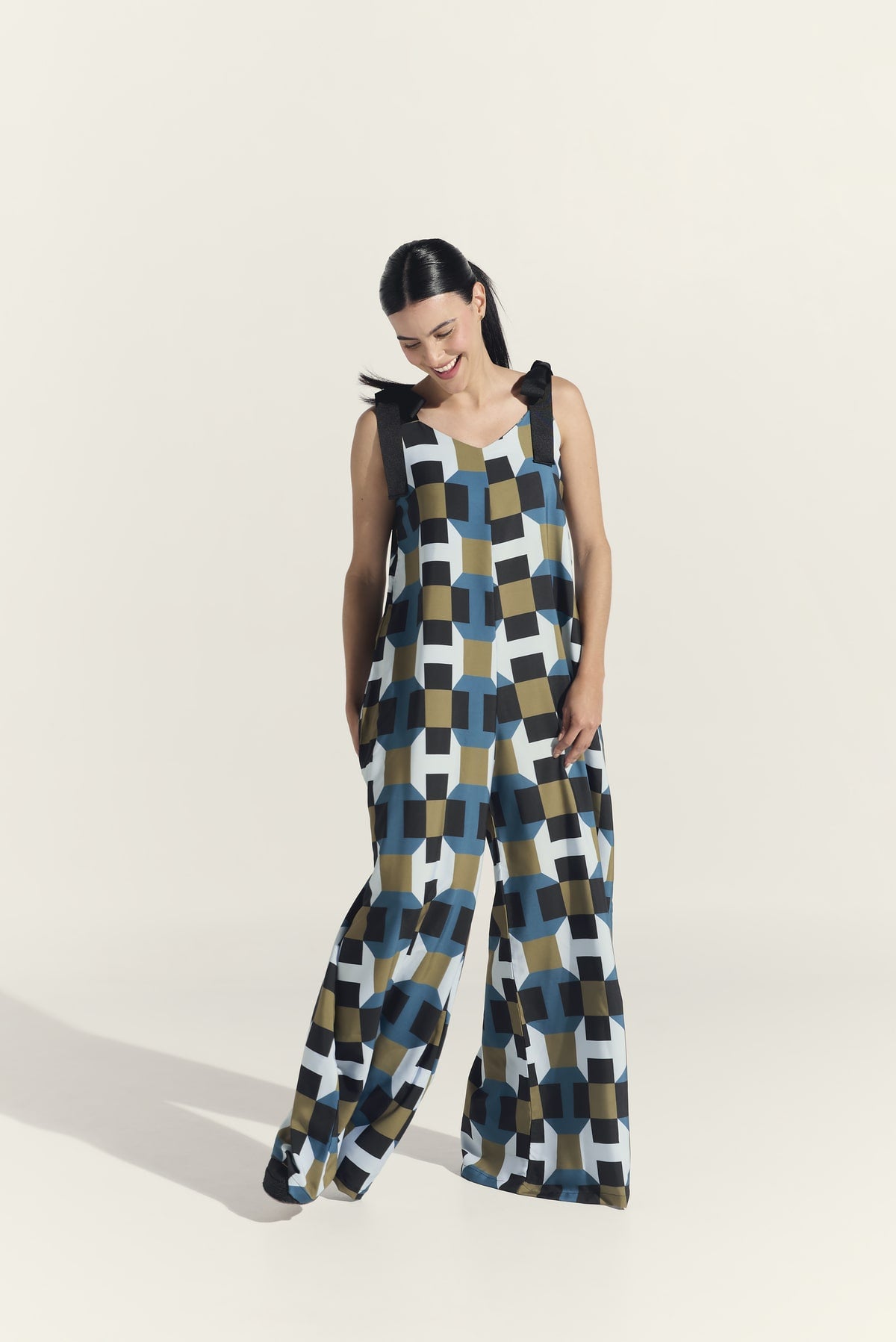 Presentamos el Ginebra Jumpsuit, un verdadero Best Seller que redefine la comodidad con un estilo inigualable. Este enterizo destaca por su cautivador estampado asimétrico, una obra de arte visual que juega con formas geométricas y colores vibrantes, creando un efecto moderno y dinámico.