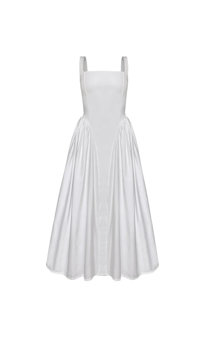 El vestido midi Sefora irradia feminidad y encanto con una silueta que equilibra a la perfección estructura y movimiento. Este vestido destaca por su top estilo corsé con escote cuadrado y tirantes anchos que brindan sujeción y le aportan un toque romántico y sofisticado. La falda con vuelo fluye con gracia, lo que lo hace ideal para ocasiones especiales.