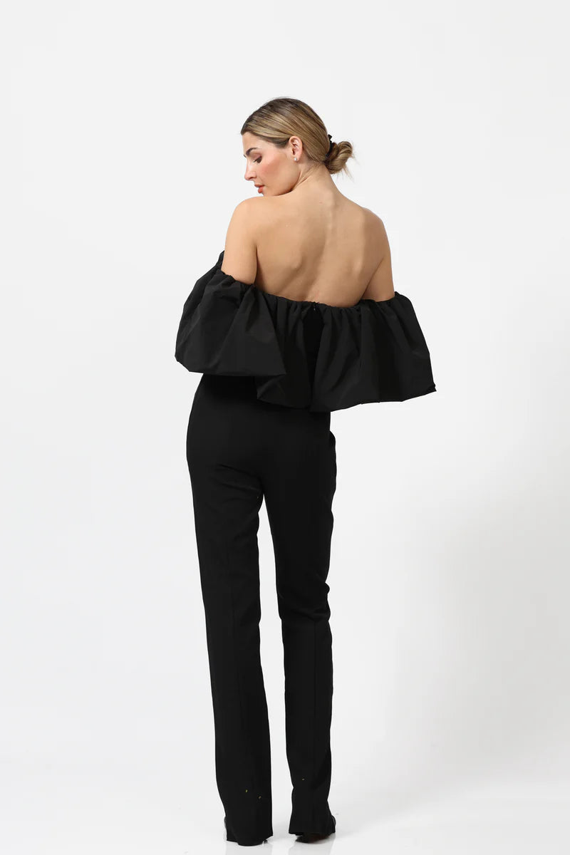 JUMPSUIT NEGRO CON BOMBACHE, ESTILO ÚNICO Y ELEGANTE