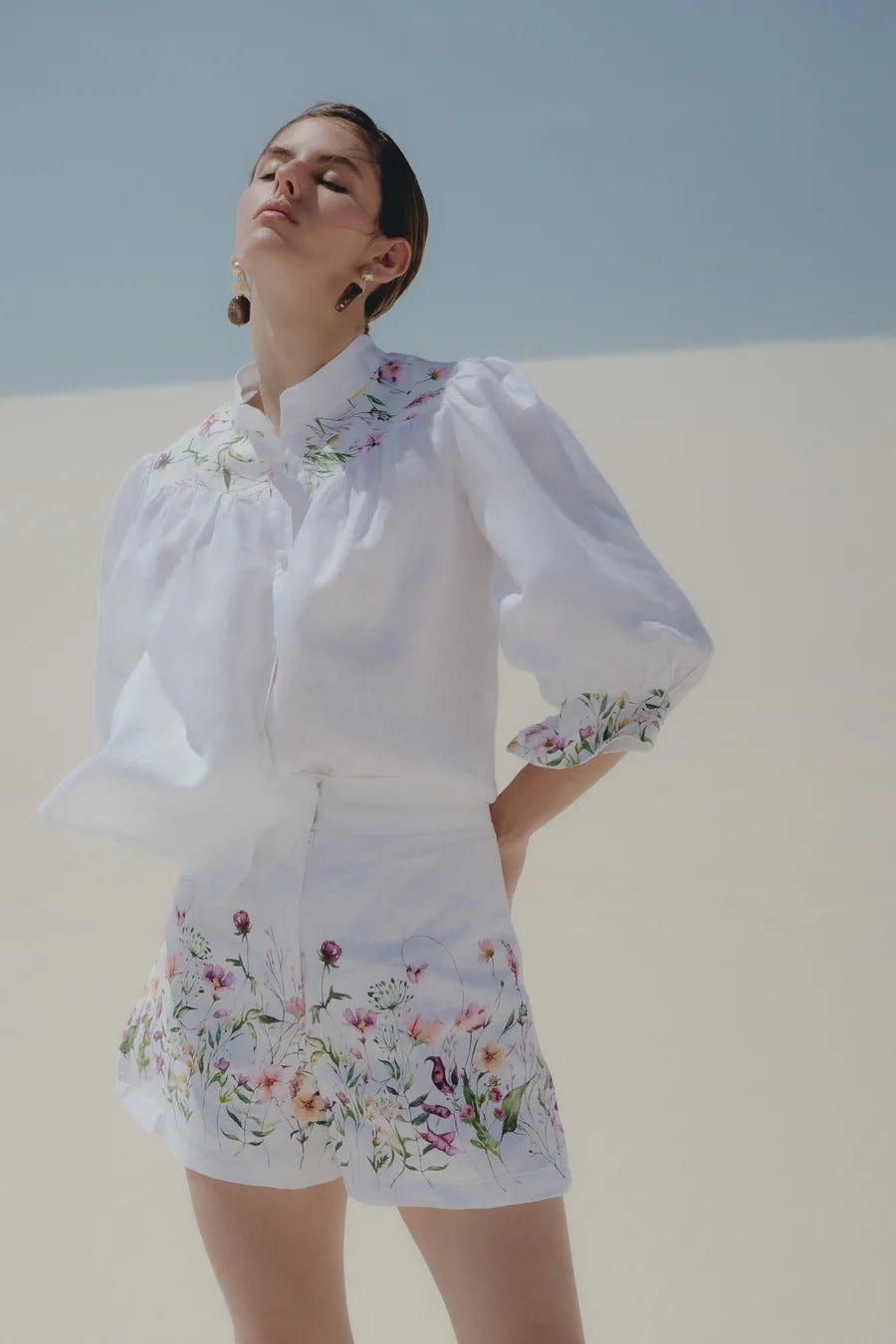 Short en lino 100% con estampado jardin