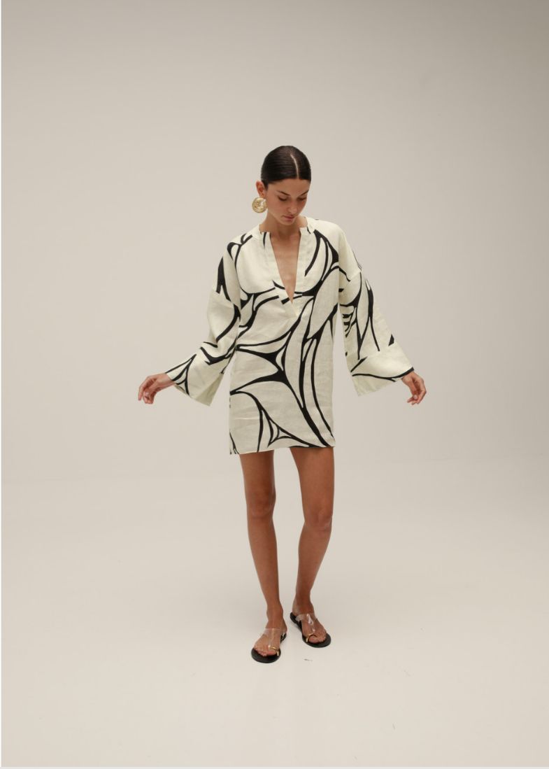 VESTIDO CORTO, CORTE V CON MANGAS LARGAS