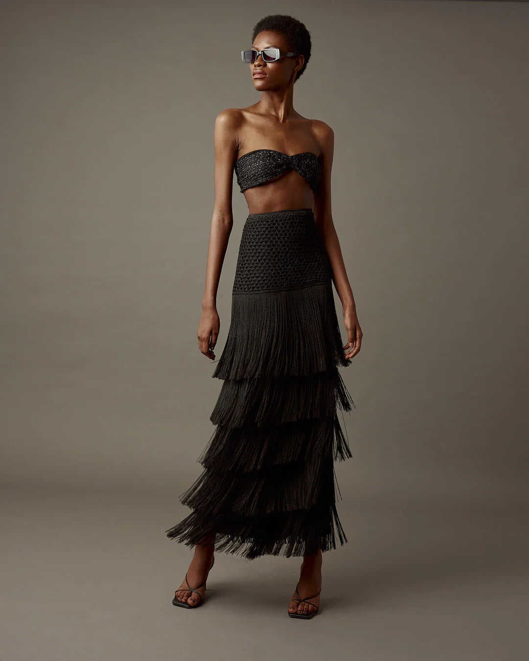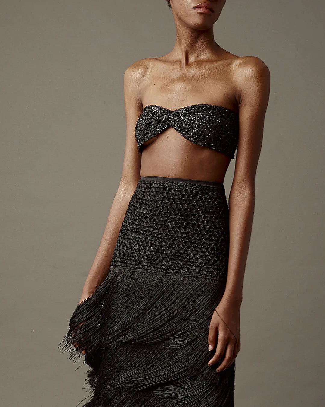Para los amantes de la artesanía de lujo, esta elegante silueta en forma de A mide 100 centímetros de largo y cuenta con cinturilla elástica ajustable. Confeccionado en un tejido suave y altamente elástico para mayor durabilidad y comodidad. En la parte superior, destacan las telas hechas a mano con nuestros hilos exclusivos en crochet artesanal, complementadas con cuatro tiras de hilos que crean un encantador efecto cascada. El Monarka combina artesanía, comodidad y elegancia en una sola prenda. Es ideal para la oficina con una blusa o para un evento más formal con un top sexy; esta versátil prenda las hará destacar siempre.