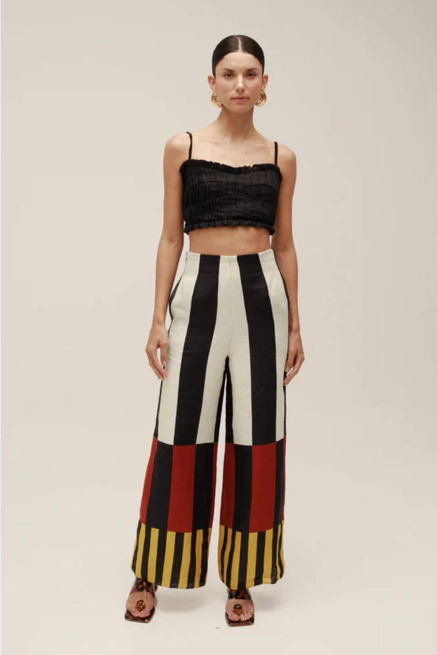 SET DE LINO CON PANTALÓN COLORIDO TALLE ALTO CON TOP SIN MANGAS