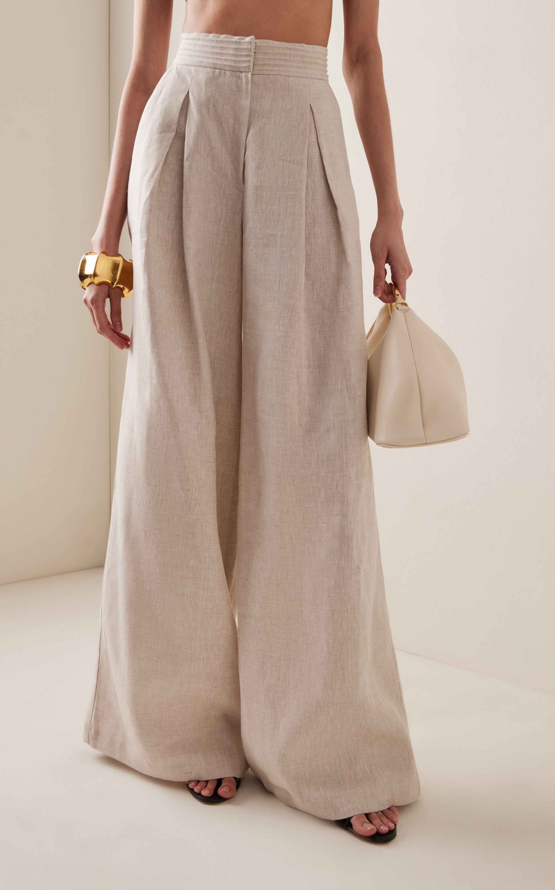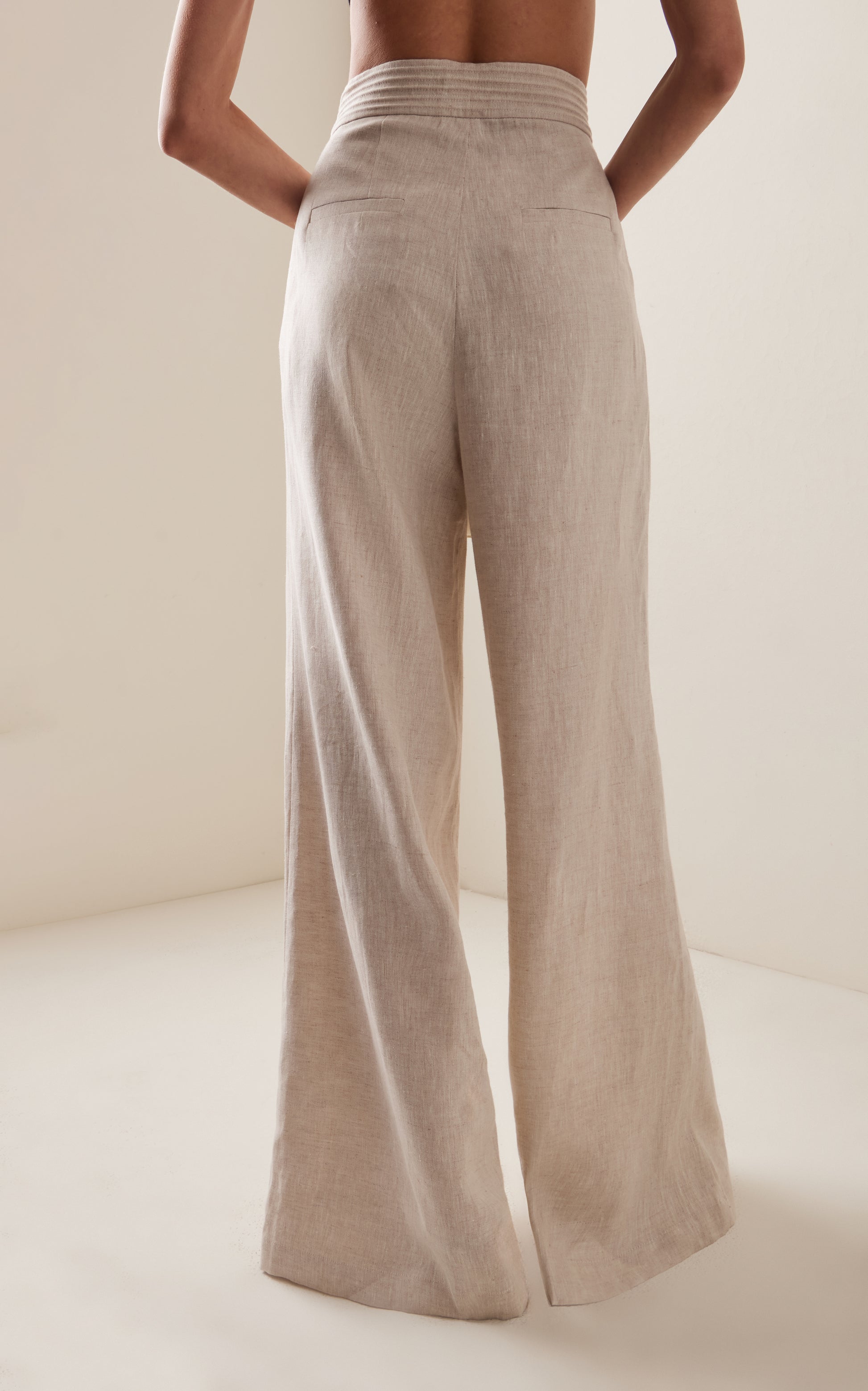 Confeccionados en lino fresco, los pantalones "Vinales" tienen un corte ancho y tiro muy alto, con favorecedores pliegues en la cintura. Combínalos con una blusa vaporosa.